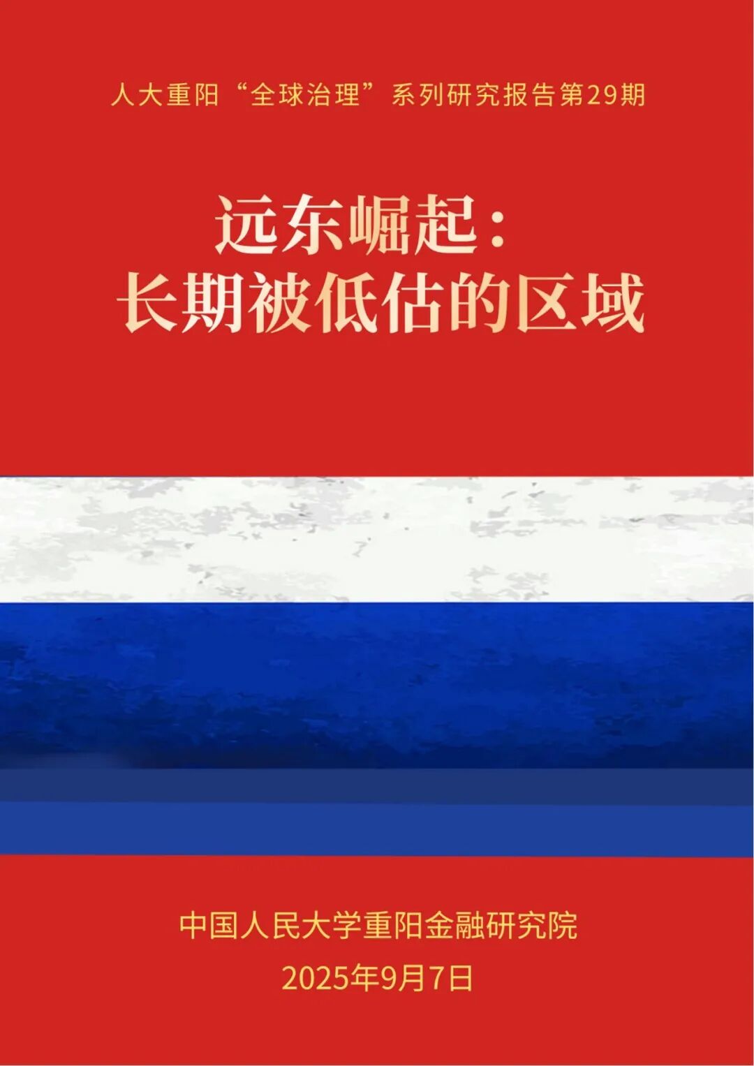 9月3日至6日,第十届俄罗斯东方经济论坛在海参崴举办,人大重阳第三次受邀参会并发言。自俄乌冲突以来,人大重阳已十余次深入俄罗斯调研,尤其是先后五次调研远东地区,积累了丰富的一手资料。在此背景下,本次论坛正式发布的《远东崛起:长期被低估的区域》报告,正是基于最新实地调研成果和系统研究而形成,对远东战略地位与发展趋势进行了全面梳理和深入研判。