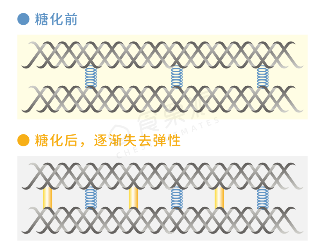 糖化,通俗地说,糖化就是蛋白质、脂肪跟糖类搞在一起,被"腐化"了。