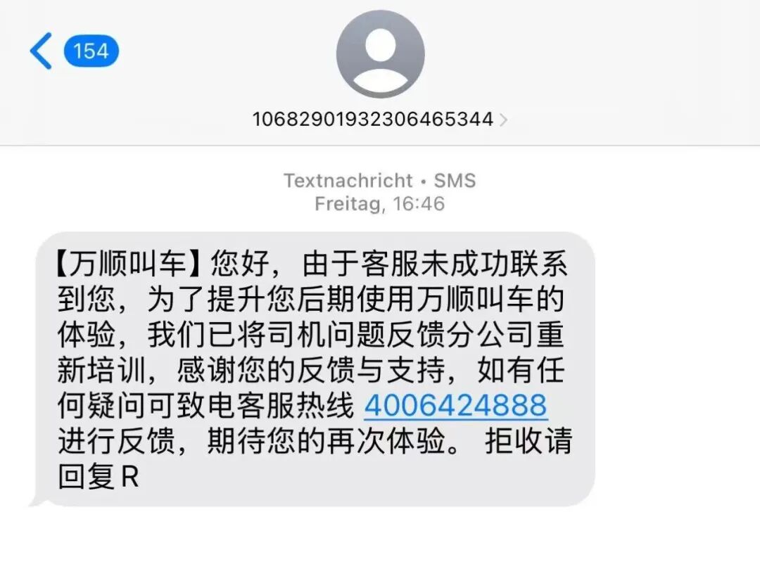 过了两天,我收到短信,你简直不敢相信,万顺叫车给出的反馈是: