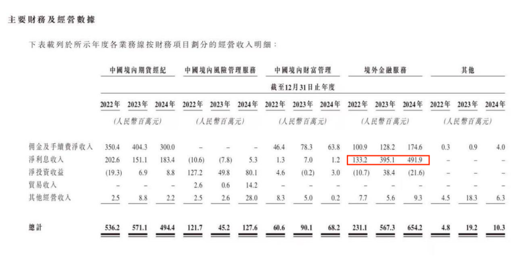 然而,透过招股书的数据不难发现,公司境外业务的繁荣与外部利率环境高度相关。2022年-2024年,公司境外金融服务业务中净利息收入从1.33亿元激增至4.92亿元,增长幅度约270%,特别是2023年相比2022年增长了196.62%。