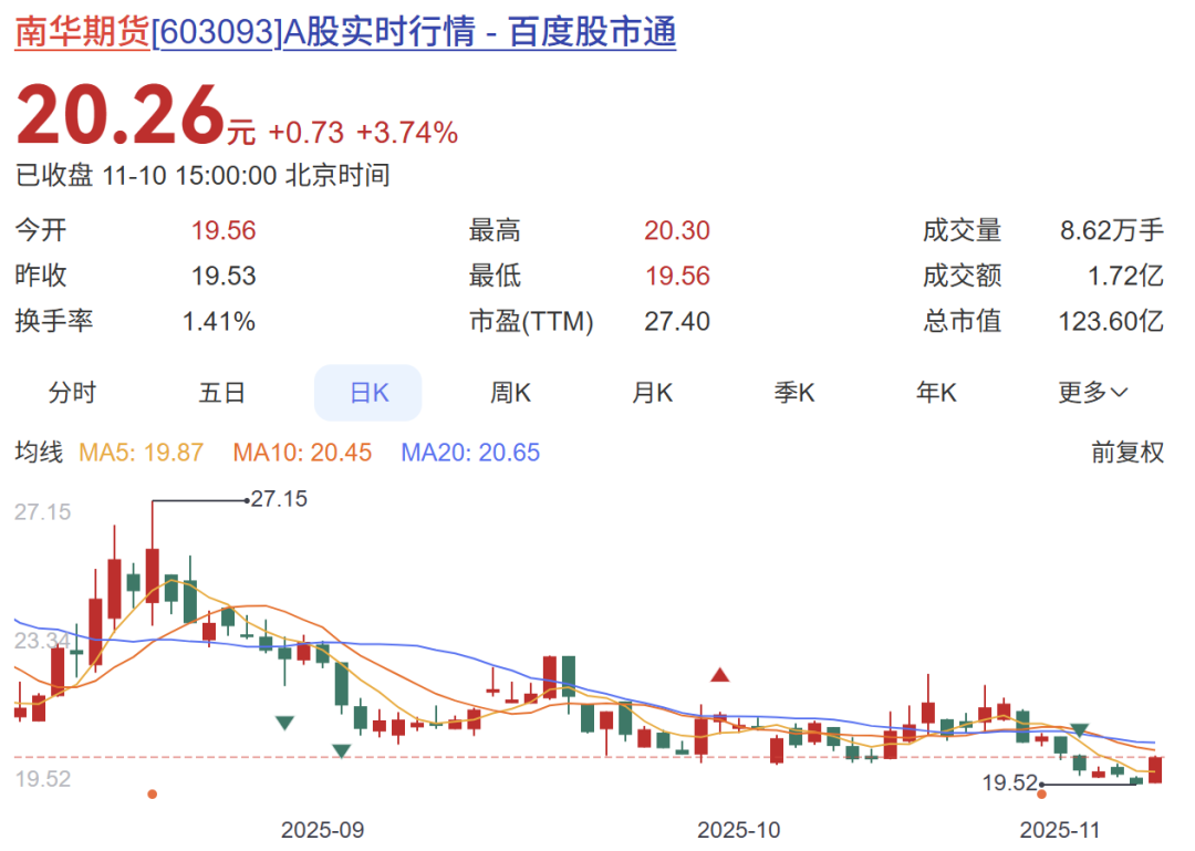 不过,这一预期并未对其A股股价起到提振作用,更新招股书以来,走势持续阴跌,在11月7日触及近半年低点后,才在11月10日整个期货板块上涨的情况下报收于20.26元/股,总市值现为123.60亿元。