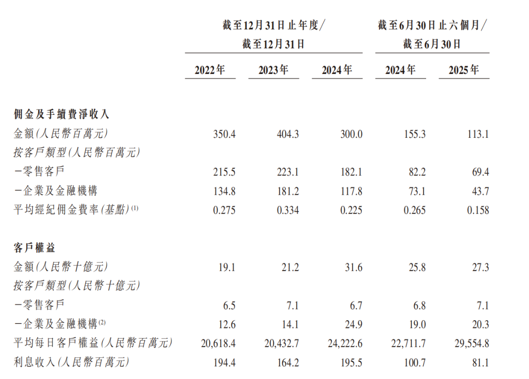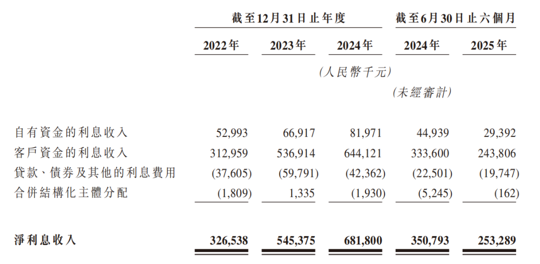 且净利息收入持续占比较高,2022年-2024年及2025年上半年,公司净利息收入分别为3.27亿元、5.45亿元、6.82亿元、2.53亿元,分别占同期经营收入的34.2%、42.2%、50.3%及42.7%。其中,客户资金的利息收入又是净利息收入的最大组成部分,同期占比分别为95.8%、98.4%、94.5%及96.3%。