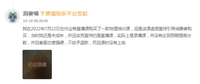 有用户反映,还有用户投诉作业帮产品缩水,购买的课程实际内容与宣传严重不符,承诺的优质师资、丰富课程资源大打折扣;同时,硬件产品也问题多多,比如学习机自动绑定付费服务,而且缺乏有效的管控措施,孩子一不小心操作就可能导致意外扣费,让家长们防不胜防。
