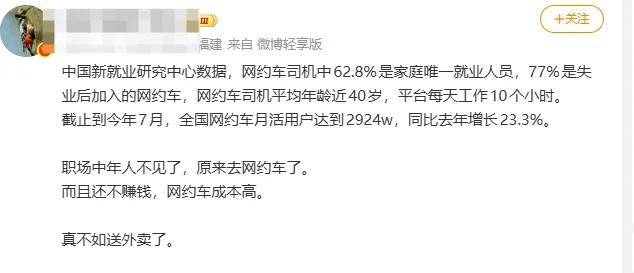 就好比今天的一个热搜话题,失业的负债的都去跑网约车了……