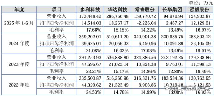 2022年至2024年及2025年1—6月(报告期内),泓毅股份的营业收入分别为13.08亿元、17.92亿元、28.88亿元、15.49亿元,毛利率分别为16.93%、19.49%、19.01%、16.97%;扣非归母净利润分别为6121.53万元、1.16亿元、2.31亿元、1.21亿元。
