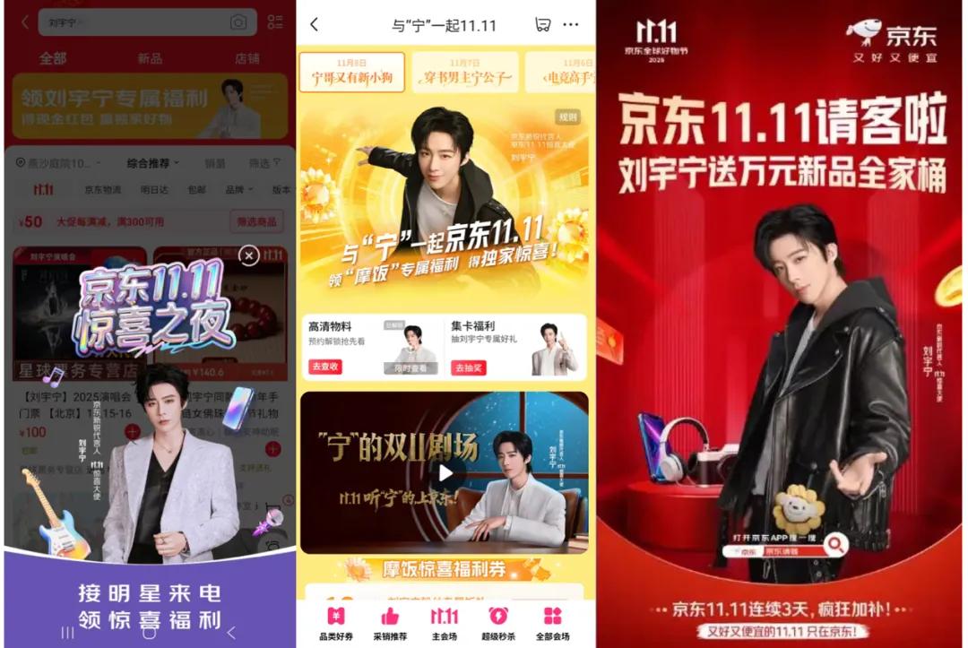 但「刘宇宁x京东」的这波操作确实让人眼前一亮,国民歌手x国民电商APP,既出乎意料,又“懂的都懂”。这也不禁让我们好奇,双11营销玩法眼花缭乱,为什么是刘宇宁抢占了注意力?这背后,又有京东的哪些构思?
