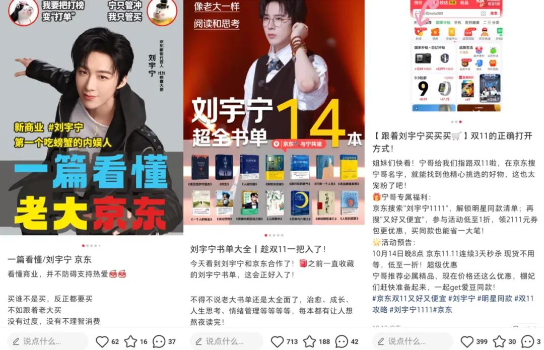 京东11.11和刘宇宁等明星合作带来的最重要启示在于,他们不仅做到了声量的最大化,同时还把明星的影响力、娱乐的情绪价值和消费者的购物行为习惯融合了起来。
