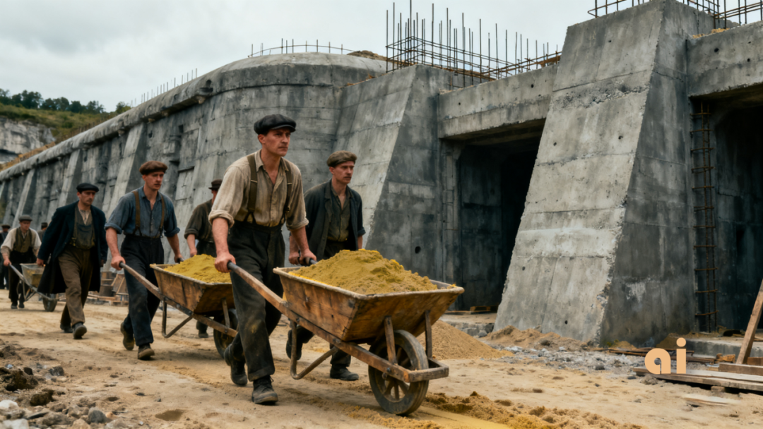 马奇诺防线,从1928年开始修建,12年后,到1940年,仍是个热火朝天的大工地。