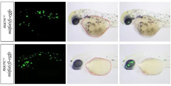 地表鱼(上图)洞穴鱼(下图)的功能拯救实验结果图(图片来源:参考文献[2])
