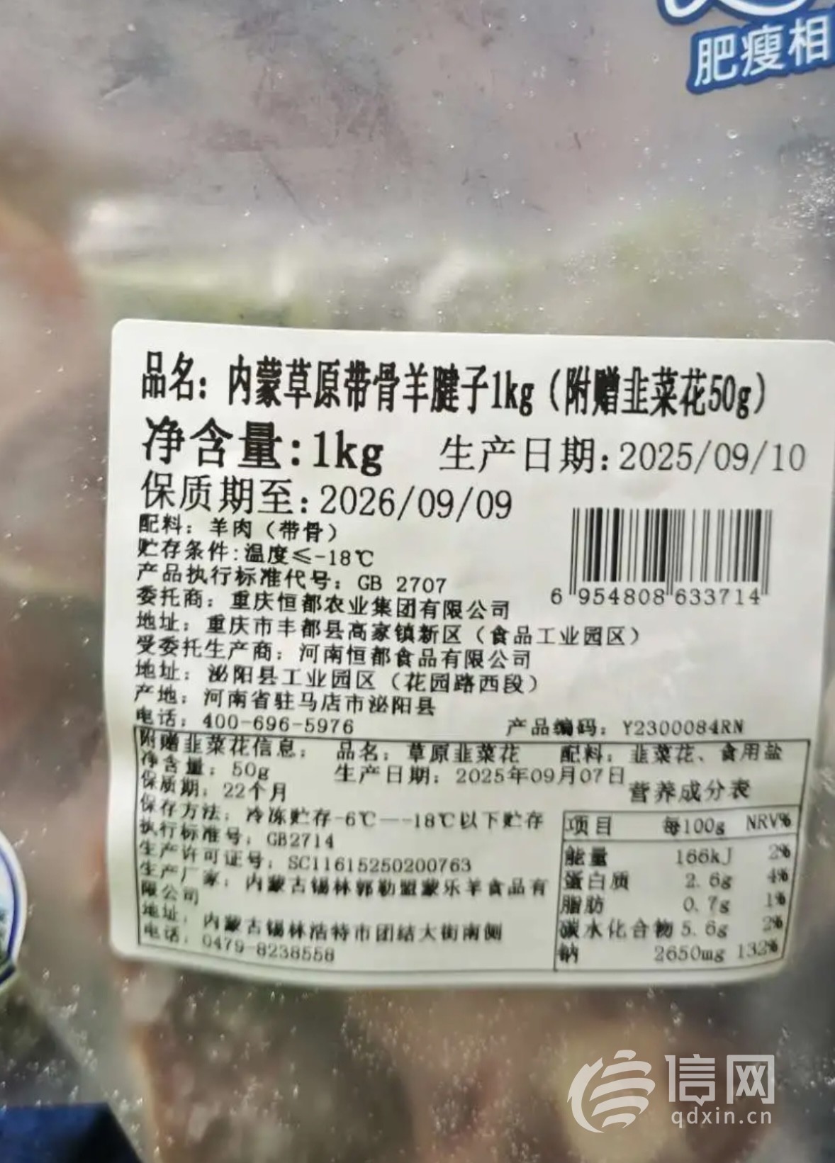 “内蒙原切羊腱子”产自河南驻马店 网友笑称送的韭菜花是内蒙的_风闻