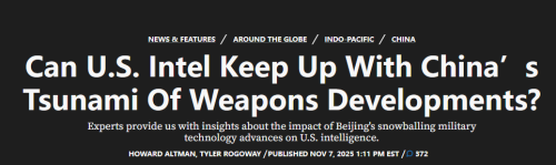 “中国规模庞大且不断增长的现代武器库存确实对美国的情报收集工作构成了挑战。美国的情报能力相当成熟,一旦系统部署,可以收集大量数据。然而,预见未来的武器或研发中的项目更为有用,而这对于美国情报机构来说,由于中国武器项目的保密性,可能更难准确判断。因此,美国情报机构在某种程度上存在被新武器系统的出现所震惊的风险。”
