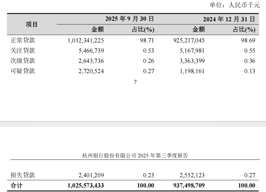 从2025年三季报的关键指标看,杭州银行当前的风险抵御基础仍显厚实,这为信用减值计提收缩提供了合理性支撑。