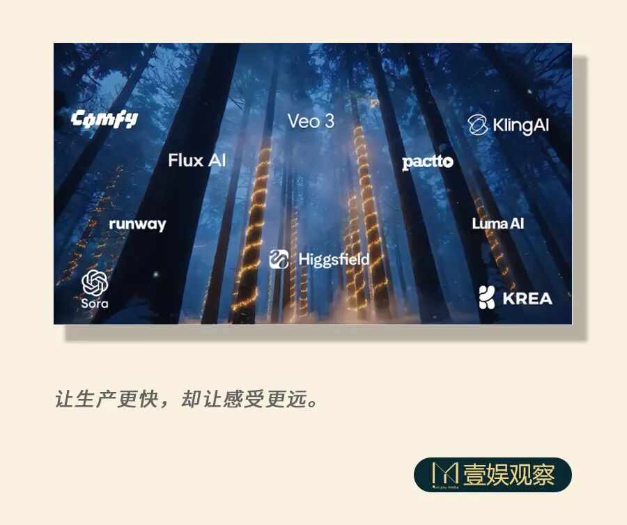 更深层的隐忧在于,类似趋势并不会很快消失。AI创作在广告领域的逻辑,正在迅速向影视行业蔓延。