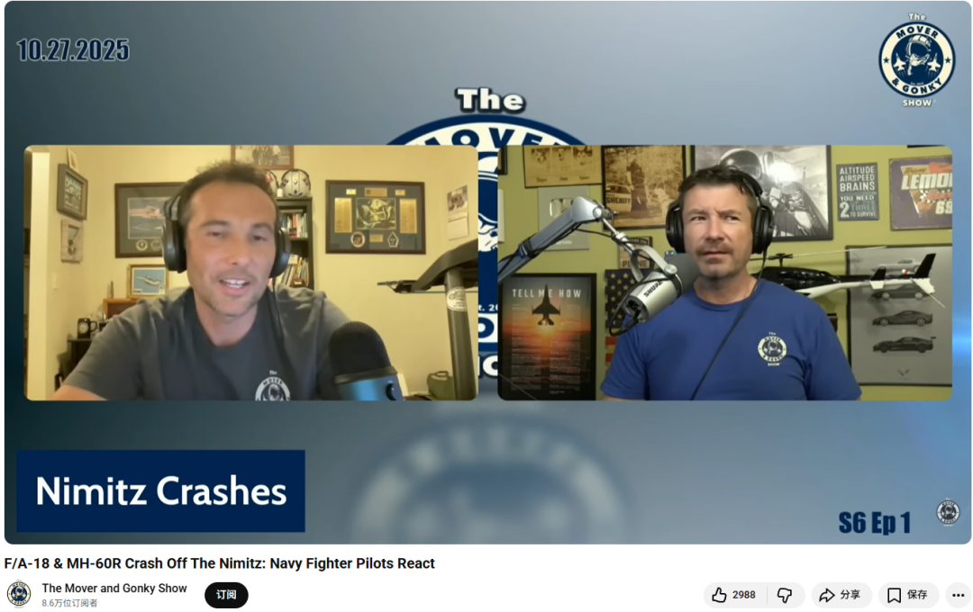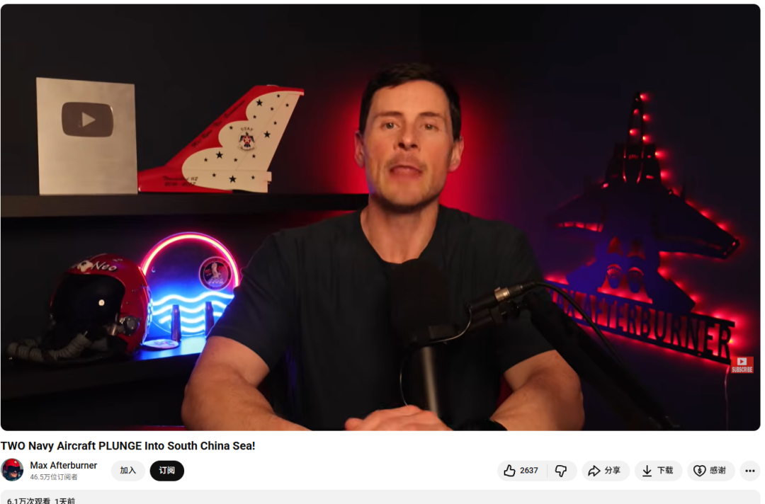 比如前美国空军飞行员,油管知名军事自媒体博主Max Afterburner发了一起视频强调:我作为前空军飞行员,这种事情我见过很多,而这一次是创造了奇迹,这进一步证明了我们的飞行员和机组素质过硬,可以全员毫发无损被打捞上来,这种救援效率是全球第一的。