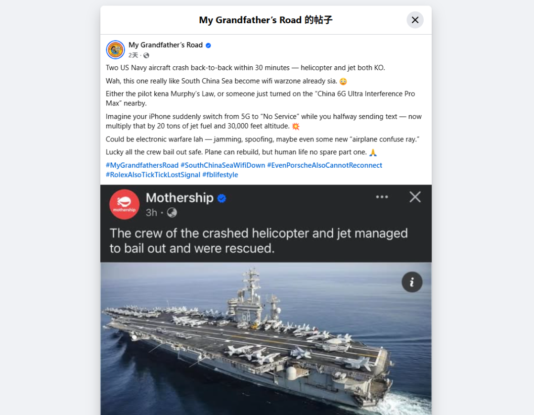脸书用户My Grandfather’s Rode发帖阴阳: