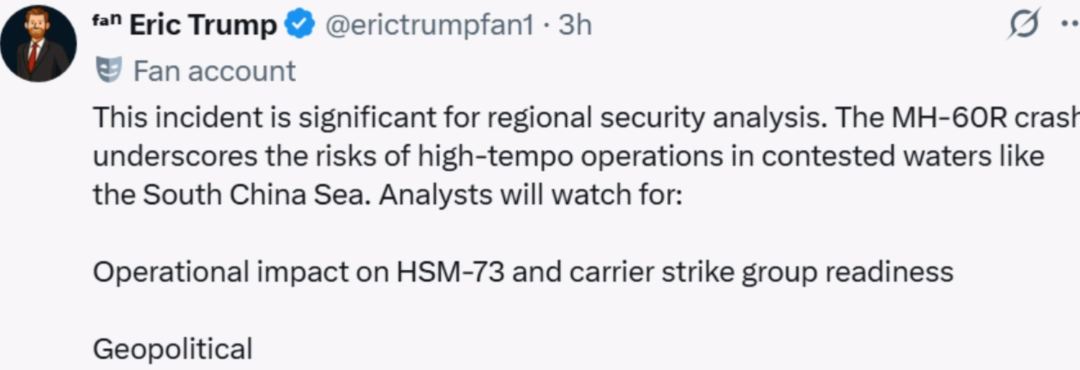 总统要维护面子,军官要稳住位子,但群众可不管你这那的。事故发生后,美国社交媒体瞬间炸锅。各种军事装备、技术参数的讨论反而成了其次,真正的焦点是美国网民展现出的魔幻现实主义舆论混战。