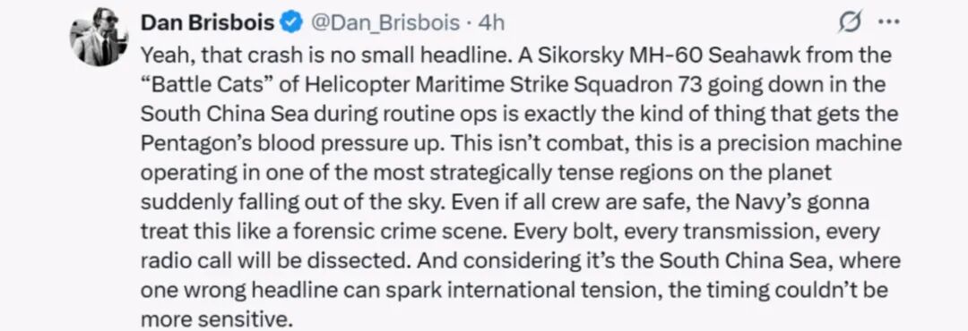 此事对地区安全分析意义重大,Mh-60R直升机坠毁事件凸显了南海争议海域有高频率行动的风险,分析人士将关注以下方面3对HSM-73和航母打击群战备状态对作战影响,以及地缘政治的深刻影响。