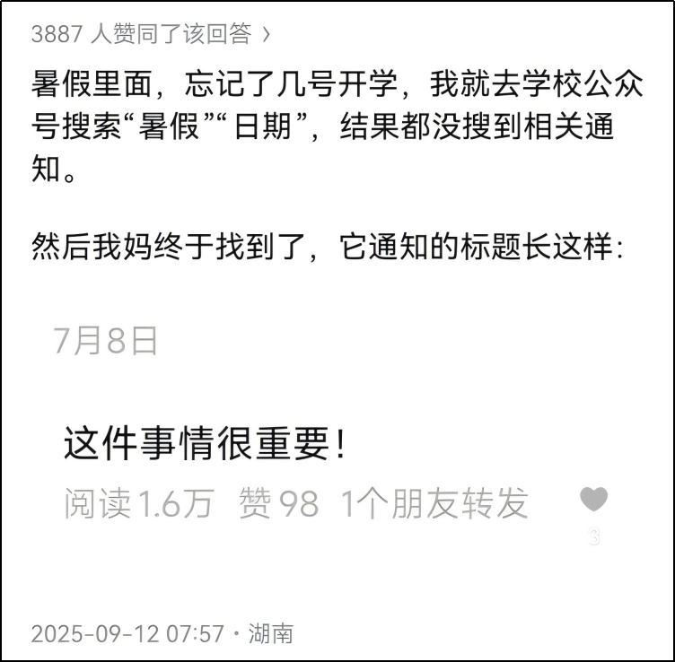 学生想找开学日期,怎么找也找不到。因为标题写的是:这件事情很重要!