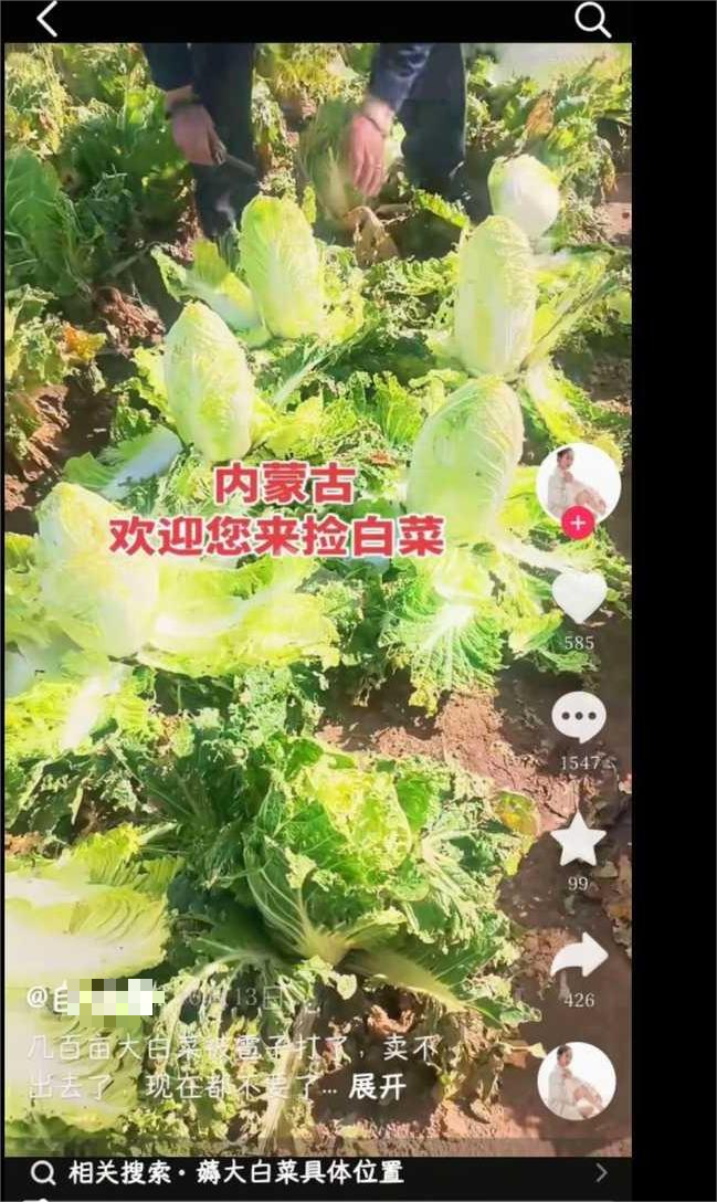 有网友看到了,也拍视频说几毛钱一斤的白菜,捡了一车。