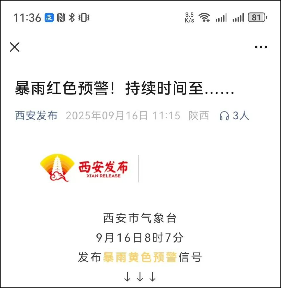 一家公众号报道暴雨预警,不在标题里写明持续时间。