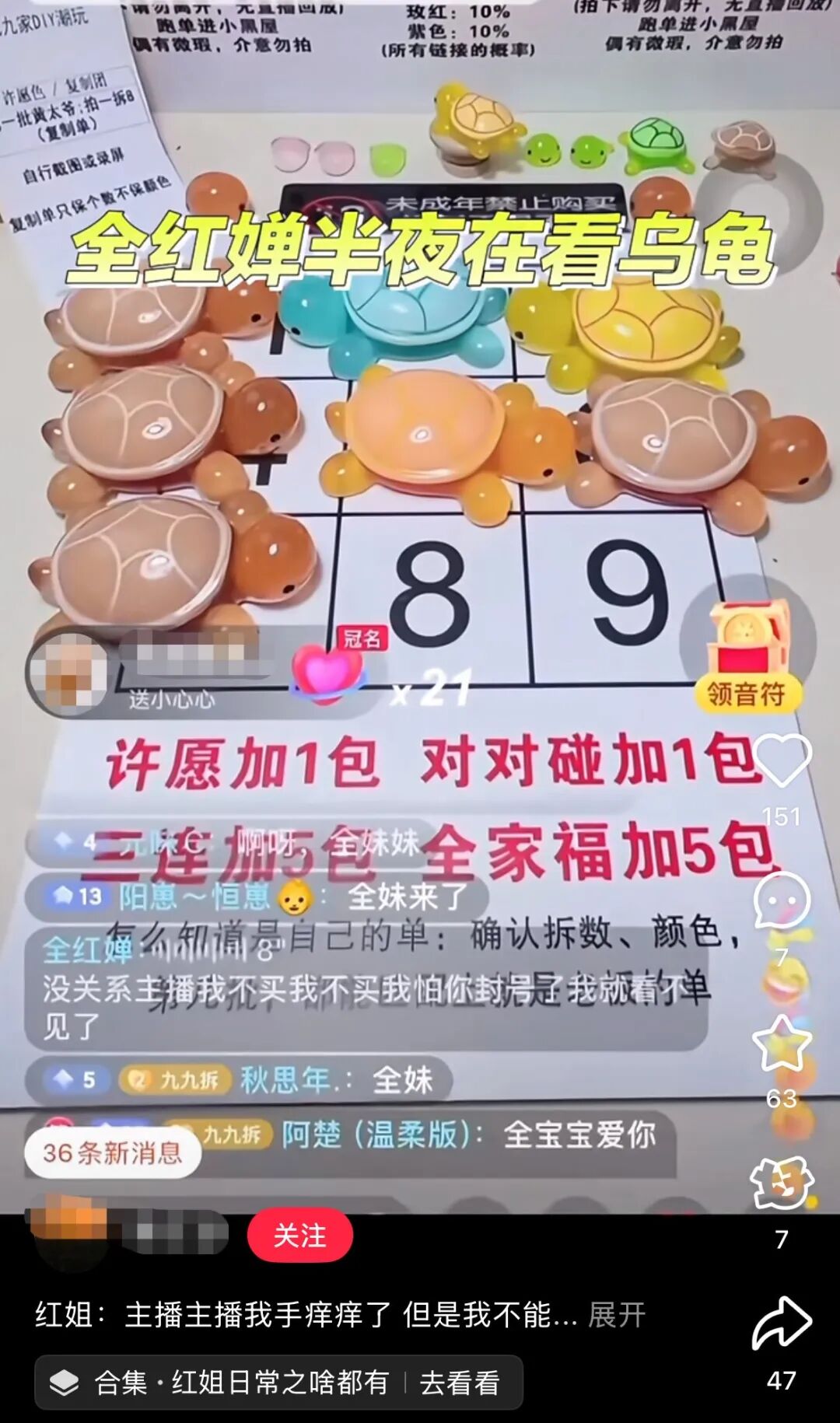 这些抽抽乐直播间的前身要从“乌龟对对碰”说起了。去年,在登上十米跳台、以水花消失术征服世界的前一天,全红婵正沉迷于另一项需要运气和专注的运动:直播间拆乌龟盲盒。