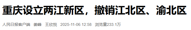 现在两江新区升格为超级大行政区,整合江北、渝北大部分区域,解决经济区与行政区割裂问题,提升资源统筹效率,可以有效规避重复建设的问题——