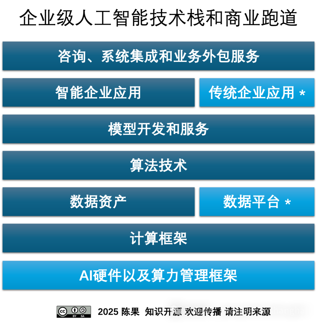 我试着梳理了一下企业级人工智能的技术栈,以及在这个技术栈上可能有的商业跑道: