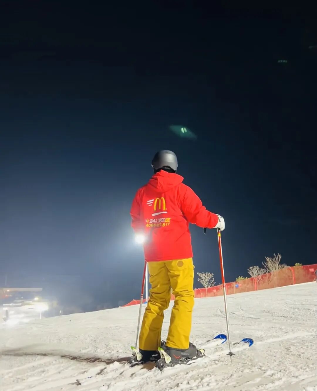 如果说外卖工服出现在城市里,还有人怀疑你是下班兼职,当外卖工服出现在雪山上,其江湖地位甚至高于万元滑雪服。