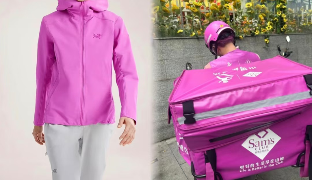 比如美团工服与北面、凯乐石、拓路者等多个品牌的冲锋衣相似度极高;山姆配送员工服神似始祖鸟,同款配色直接打上高端局。