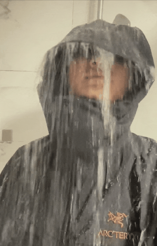 品牌们为了证明自家冲锋衣的防风、防水效果更好,一边疯狂卷参数加科技,一边用各种暴力测试增加可信度。