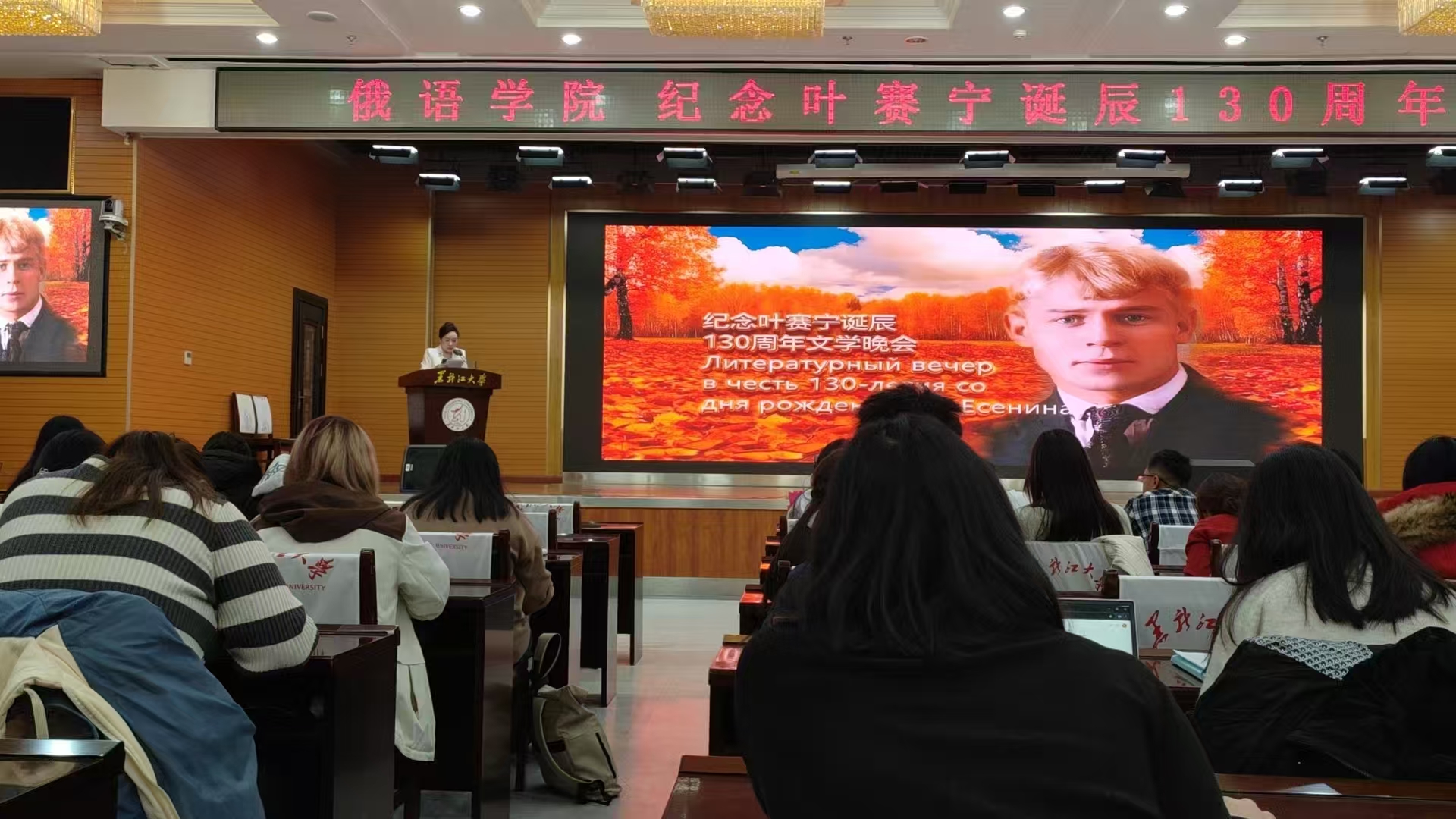 中俄资讯网(双语报道):2025年是俄罗斯诗人谢尔盖·叶赛宁诞辰130周年,为此,日前在黑龙江大学俄语学院举行了以中俄语双语朗读叶赛宁诗歌的活动,与会者向这位征服时空的伟大文学大师致敬。