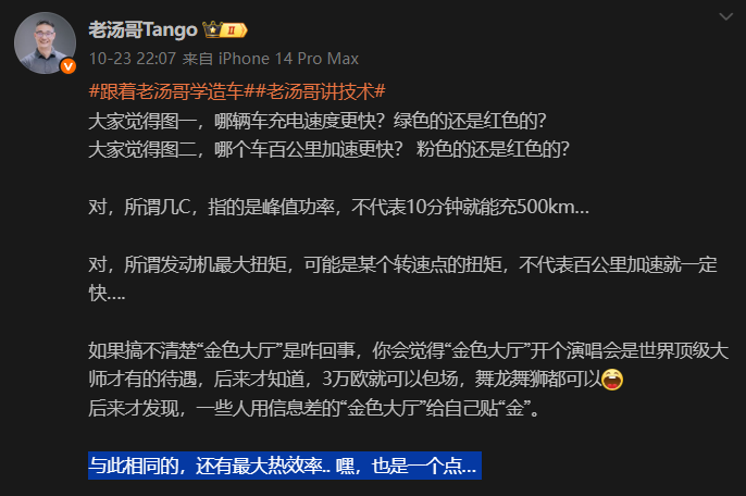 原本极其复杂的系统性工程,只用一些简单的数字就想笼统的概括,成为所谓技术优势的体现,本质上也是对汽车这个系统工程的不尊重。