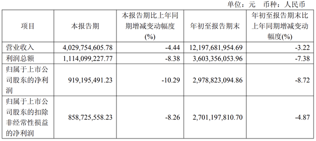 公牛集团近日发布的2025年三季报显示,2025年前三季度,公司实现营收同比下降3.22%,归母净利润同比下降8.72%。其中,第三季度的归母净利润下降幅度达到10.29%,降幅进一步扩大。