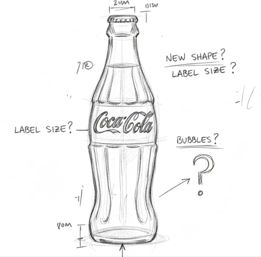 比如在花絮中放出的多张“草图”中,一张图上的可口可乐瓶盖的尺寸被标注为了“20米”。另一张草图上,角色的脚印出现在了跑动的角色前方。这些不合逻辑的细节都让人不由得怀疑这些草图并非人工制作,而是将成品视频中的截图喂给AI反向模仿生成。