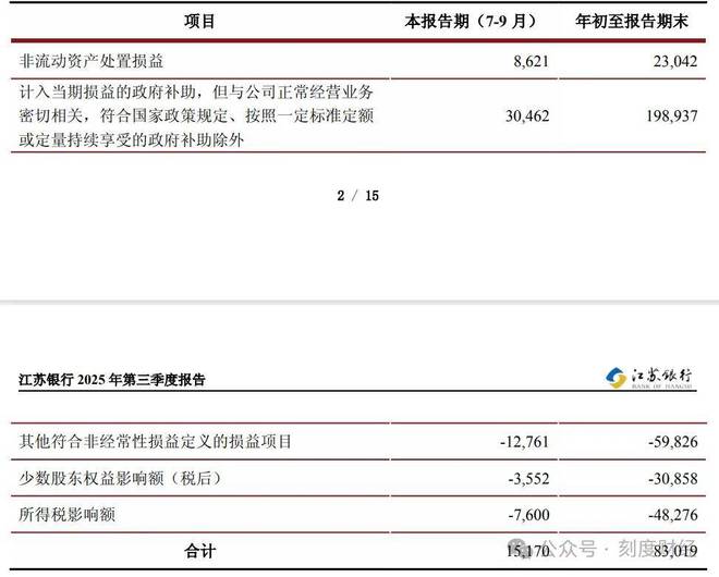 前三季度该行非经常性损益合计0.83亿元。其中,计入当期损益的政府补助达1.99亿元,扣除其他抵消项和税费影响后,成为非经常性损益的主要构成部分。尽管这一比例尚未达到显著依赖的程度,但在核心盈利效率下滑的背景下,非经营性收益的贡献仍需纳入盈利质量评估。