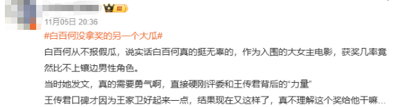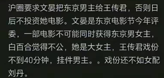 核心思想是:沪圈资本硬抬王传君,挤掉白百何的影后提名。