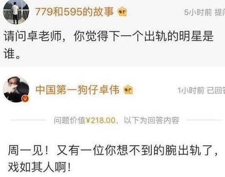 只需要一段聊天记录、一篇小作文,甚至只需要举起摄像头,只要你的涉事人够分量、内容足够吸引眼球,人人都可卓伟。