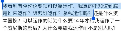 紧接着,连带着辛芷蕾的威尼斯影后也一起被翻出来挨锤。