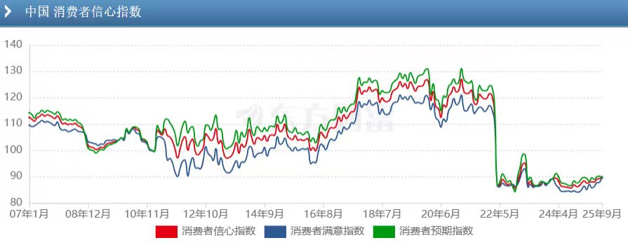 6. 可以判断,2024-2025年就是消费情绪的低点!最新的2025年9月消费者信心指数89.6,相比2021年的峰值127仍然很低,但相比前期低点86已经开始回升。综合多方面迹象,消费者信心2026年指数最起码也是温和回升,不太可能有啥大的利空因素了,房地产再弱也就那样了。有利于消费者信心提升的利好却可能很多,2025年斗争胜利,国内外市场环境都向好。财政与货币政策方面,发力空间还有很多,这都会让消费者信心回升。2026年消费者信心回升,预计A股全年上涨。