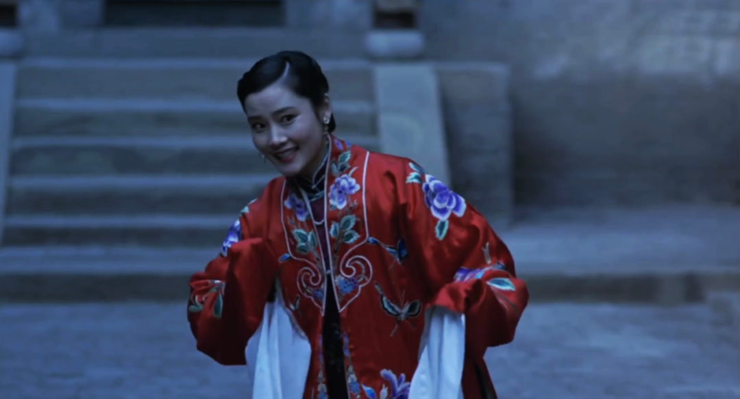 何赛飞更是向张艺谋提议,可以用唱词暗示女主角颂莲的命运走向,让戏曲与剧情完美融合在一起。而在灰色大院里,四四方方的高墙内,唱戏的三姨太是唯一一抹红色,画面看着十分压抑恐怖。