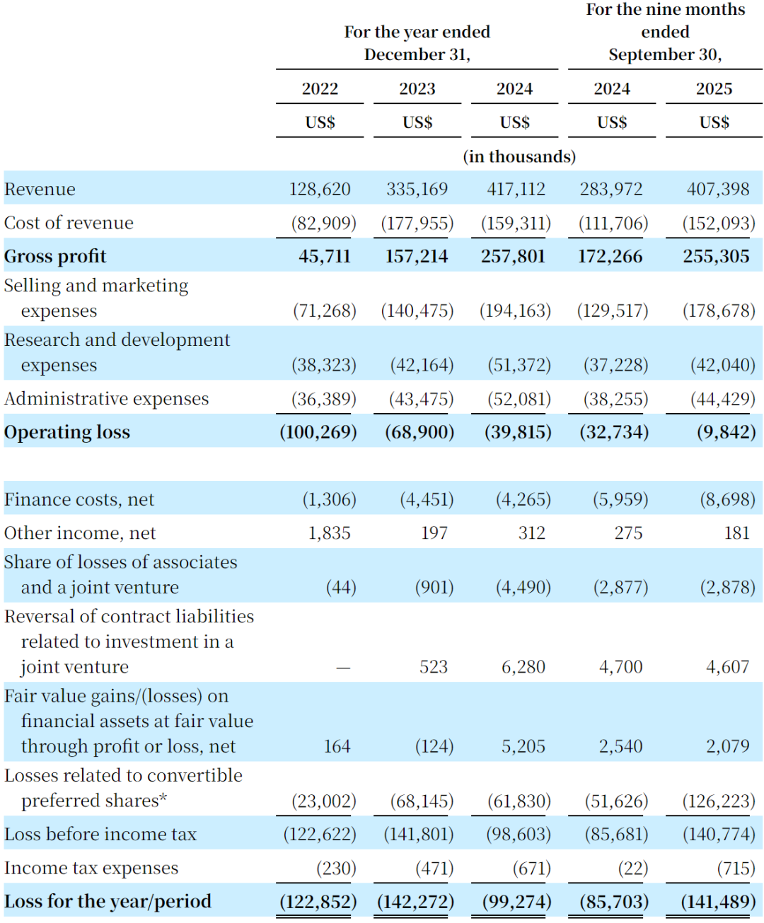 2025年前三季度,Klook前9个月营收4亿美元 净亏1.41亿美元,再往前看去年全年,这家公司亏损9927万美元。