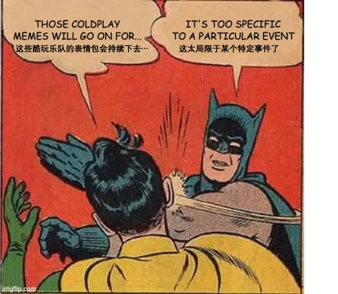换句话说,一个真正好的表情包必须具有普遍性,才能流行持续几周以上。前段时间,酷玩乐队(Coldplay)演唱会上拍摄的镜头亲吻事件就是一个很好的例子。一位已婚的科技公司CEO被拍到与公司高管拥抱亲吻,他们很快意识到自己出现在大屏幕上,在慌乱中藏起了脸——这只会让情况变得更糟。这一幕迅速走红,催生出无数的表情包。