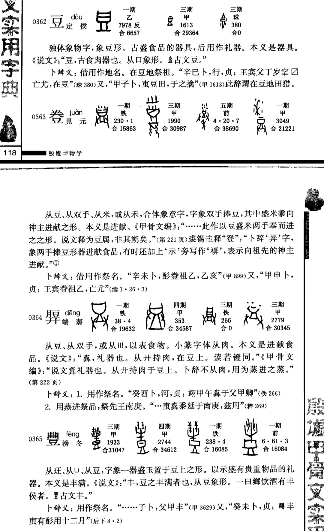 甲骨文【豆】用作地名。词例:在豆。惠豆田。