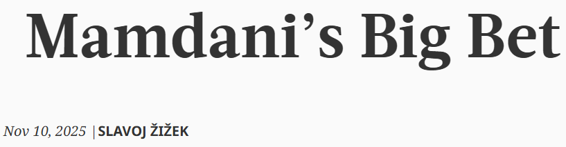 (作者是斯洛文尼亚哲学家。本文原题“Mamdani’s Big Bet”,由报业辛迪加发布于2025年11月10日。译者听桥,对机器提供的初步译文有校正。)