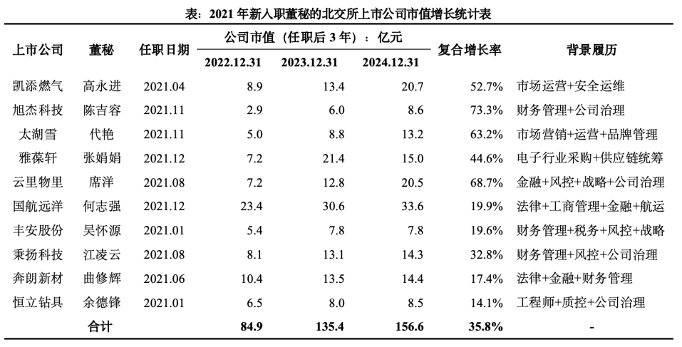 附:2021、2022年新入职董秘的北交所上市公司市值增长统计表