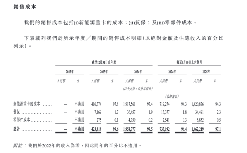 此外,公司贸易及其他应收款项快速攀升亦值得关注,从2022年末的3942.6万元增至今年6月末的14.15亿元。对此,公司在招股书中表示,主要是由于新能源重卡的销售迅速增长所致,但亦坦言,随着客户群不断扩大,公司面临的信贷风险可能增加。任何未能及时收回未偿还应收款项的行为均可能对公司的现金流、营运资金和经营业绩产生不利影响。