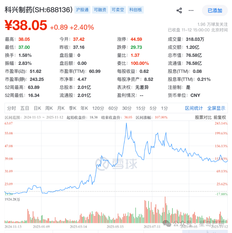 ▲科兴制药最新股价及近一年变动情况,来源:雪球