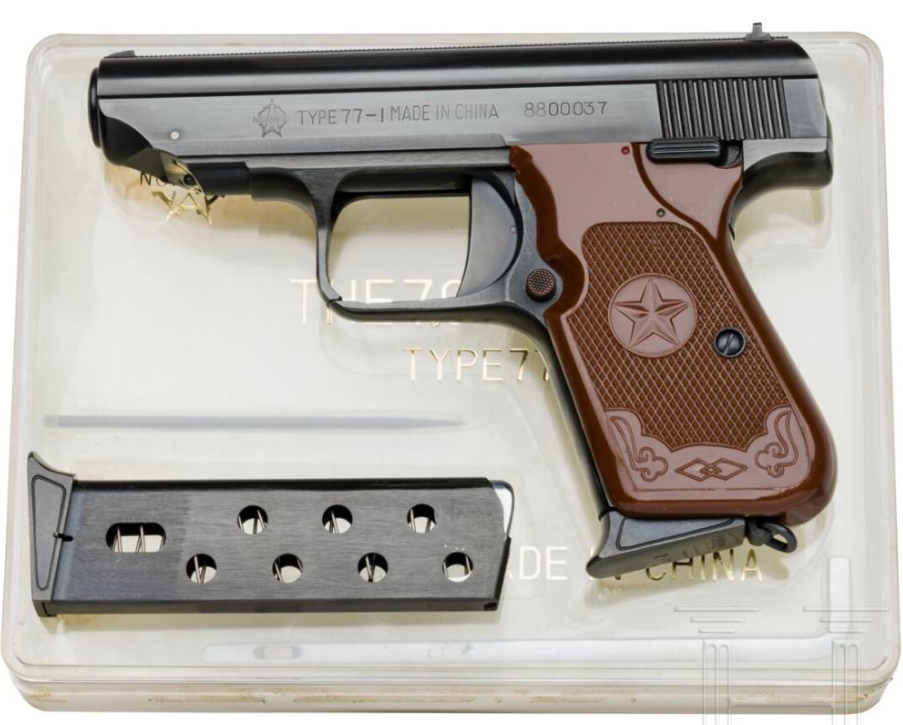 和我们熟悉的其他知名国产枪械不同,77式手枪并不是什么专业的工程师设计的,而是济南军区修械所的一名工人王家耕在业余时间设计的手枪。1977年,在厂家和部队的协助下,这种手枪被定型为77式手枪,开始广泛装备解放军高级军官使用。