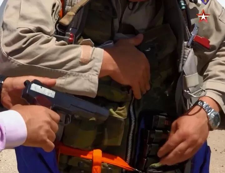 ▲俄罗斯飞行员携带APS冲锋手枪,并且携带大量子弹