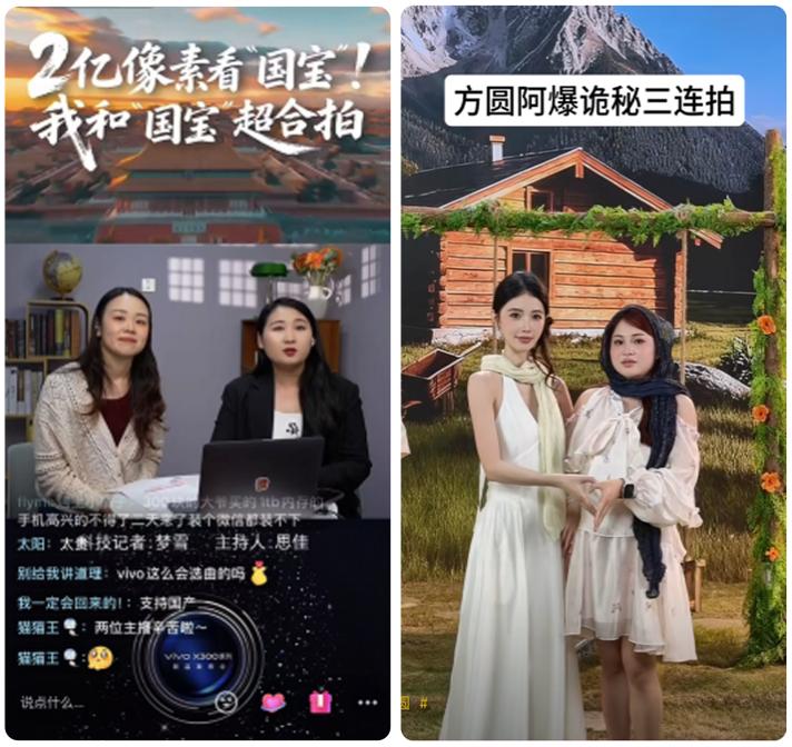 围绕新品vivo X300,vivo首先卡准国庆假期,抢跑蓄水,借#手机2亿像素是噱头吗 等抖音站内热点和达人矩阵,强化产品的影像科技感,直播间则用错峰发券建立全网价格吸引力。